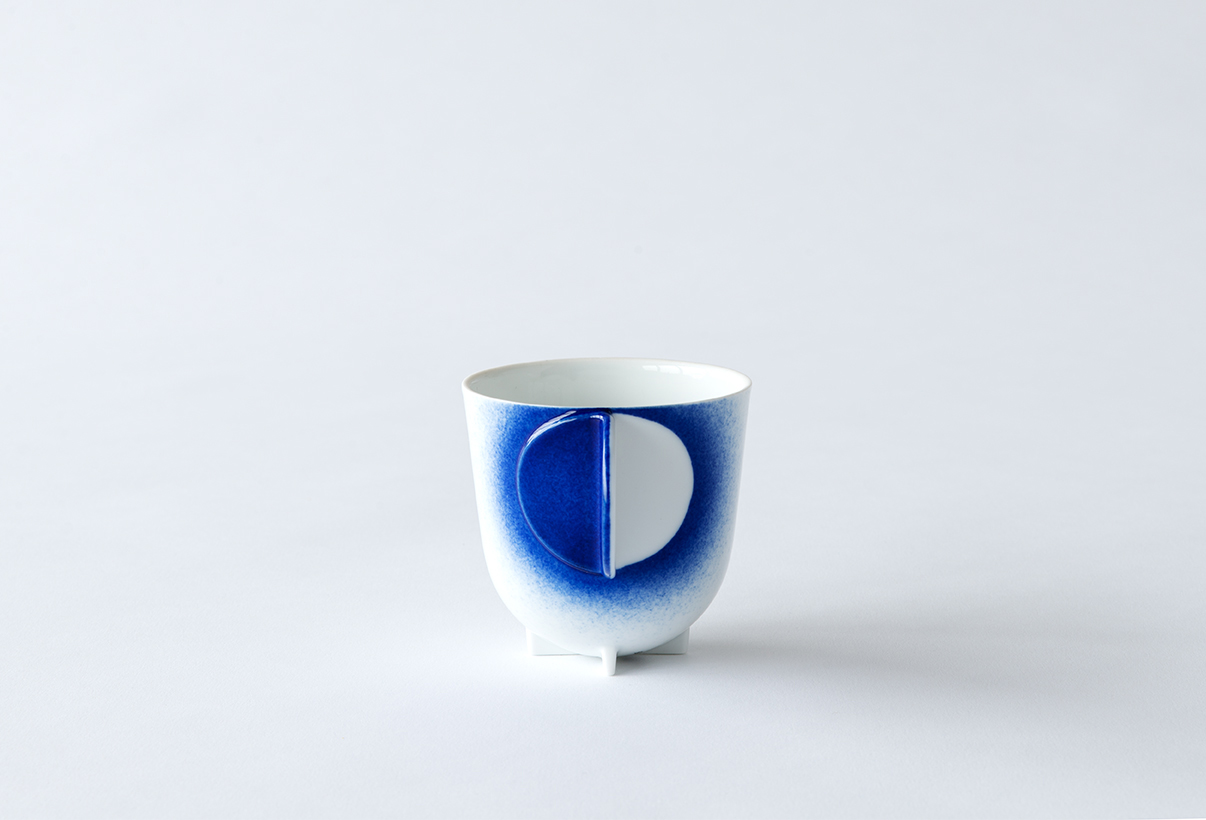 Studio Wieki Somers has collaborated with Koransha to create two tea sets that combine traditional crafts with advanced technology. The tea sets showcase the iconic ‘Koransha blue’ glaze and feature patterns inspired by an ancient decorative technique that employs metal stencils to spray motifs onto the surface. The studio adapted this technique and abstracted it - revealing the process in the pattern and thereby celebrating the craft. The traditionally used metal stencils are replaced by functional parts of the products, for example the lid of the teapot and the handle of the cup. The forms refer to one of Japan’s most iconic symbols: the moon.